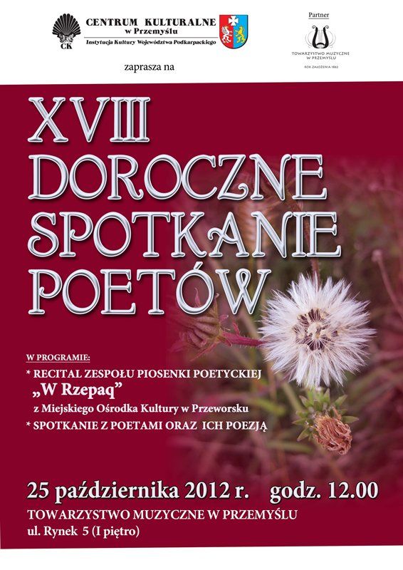 Ponieważ twórczość poetycka to wyjątkowa dziedzina sztuki, przekazująca poprzez słowa nie tylko treści, ale także emocje i krajobrazy ukazane przez indywidualne postrzeganie każdego twórcy, zapraszamy do zapoznania się z niebanalną twórczością podkarpackich poetów. Początek „Spotkania” o godz. 12.00.