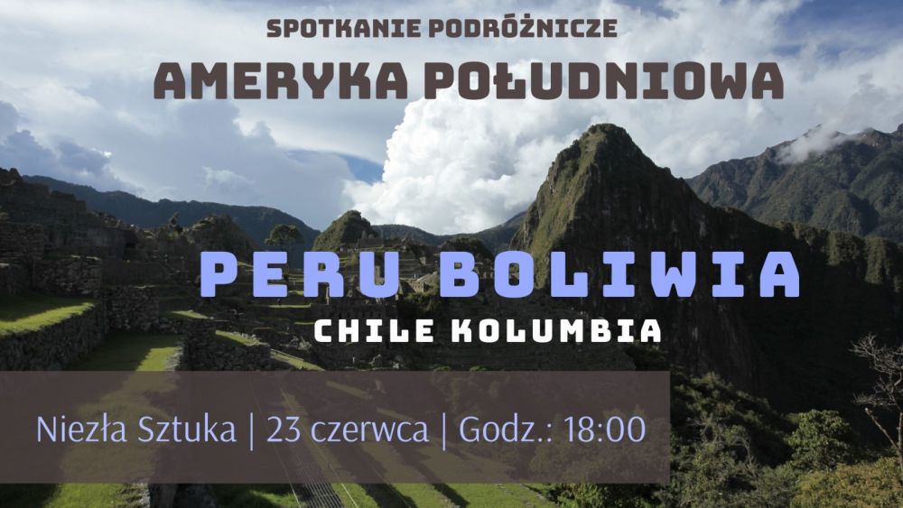 Niezła Sztuka oraz Jasne, że jadę zapraszają na spotkanie podróżnicze, na którym dowiemy się jak się podróżuje po Ameryce południowej. W programie przede wszystkim Peru i Boliwia ale co nieco usłyszymy też o Chile i Kolumbii.