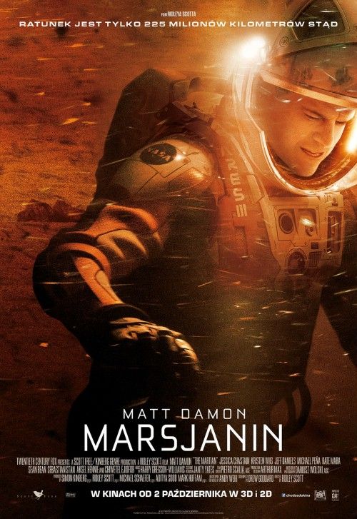 Kiedy podczas misji na Marsa dochodzi do burzy piaskowej, astronauta Mark Watney (Matt Damon) zostaje uznany za zmarłego i pozostawiony na obcej planecie. Musi polegać na swoim sprycie i woli walki, by znaleźć sposób na wysłanie sygnału na Ziemię. Eksperci NASA dokładają wszelkich starań, by sprowadzić go do domu, a koledzy z załogi planują ekspedycję. „To opowieść o przetrwaniu. Główny bohater zostaje sam w obcym miejscu i tylko od niego samego zależy, czy zginie, czy wróci do domu. Jeśli straci wiarę i podda się lękowi, nie będzie miał szans. Musi się opanować i wykorzystać swoją wiedzę, doświadczenie i umiejętności, by zawalczyć o życie” - mówi reżyser Ridley Scott. Film jest ekranizacją bestsellerowej powieści Andy’ego Weira. W rolach głównych wystąpili: Jessica Chastain, Kristen Wiig, Jeff Daniels, Michael Peña, Kate Mara, Sean Bean, Sebastian Stan, Aksel Hennie, Donald Glover, Mackenzie Davis i Chiwetel Ejiofor.