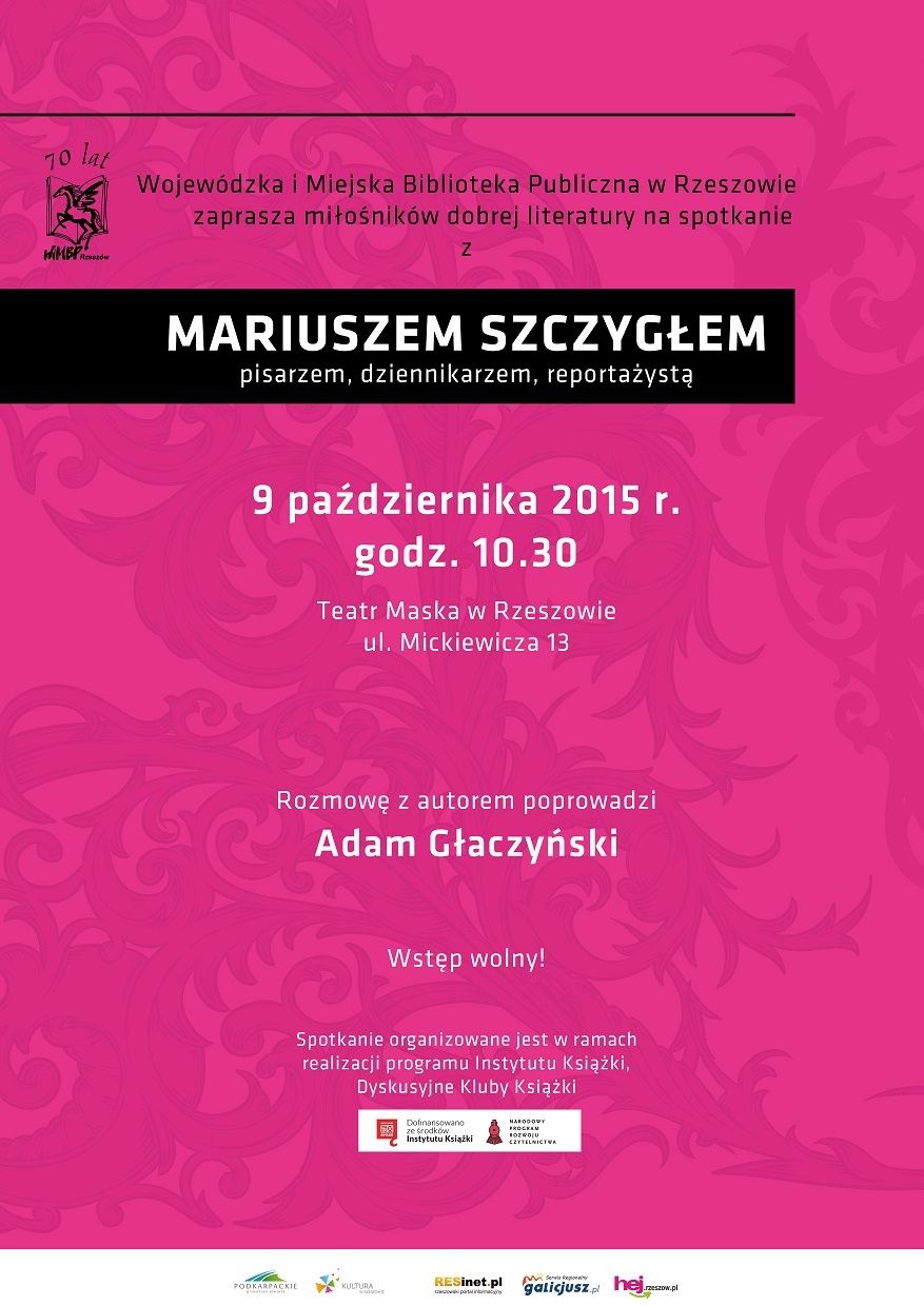Rozmowę z autorem poprowadzi Adam Głaczyński. Spotkanie odbędzie się 9 października 2015 r. o godz. 10.30 w Teatrze Maska w Rzeszowie, przy ul. Mickiewicza 13.