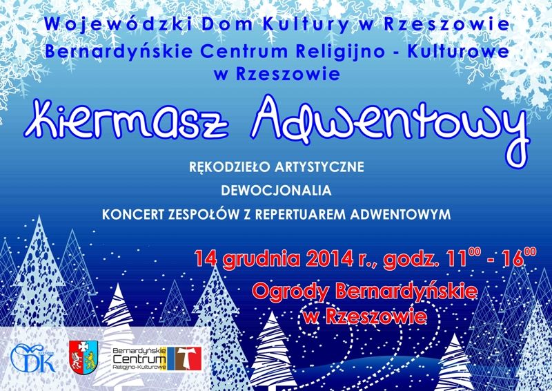 Wojewódzki Dom Kultury w Rzeszowie i Bernardyńskie Centrum Religijno – Kulturowe w Rzeszowie zapraszają na Kiermasz Adwentowy.