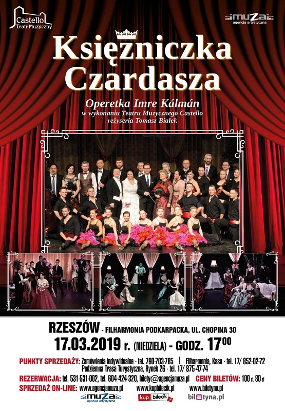 Agencja Artystyczna MUZA zaprasza na operetkę „Księżniczka Czardasza” Imre Kalman w wykonaniu Teatru Muzycznego Castello. Wydarzenie odbędzie się 17 marca 2019 r. o godz. 17:00 w Filharmonii Podkarpackiej.