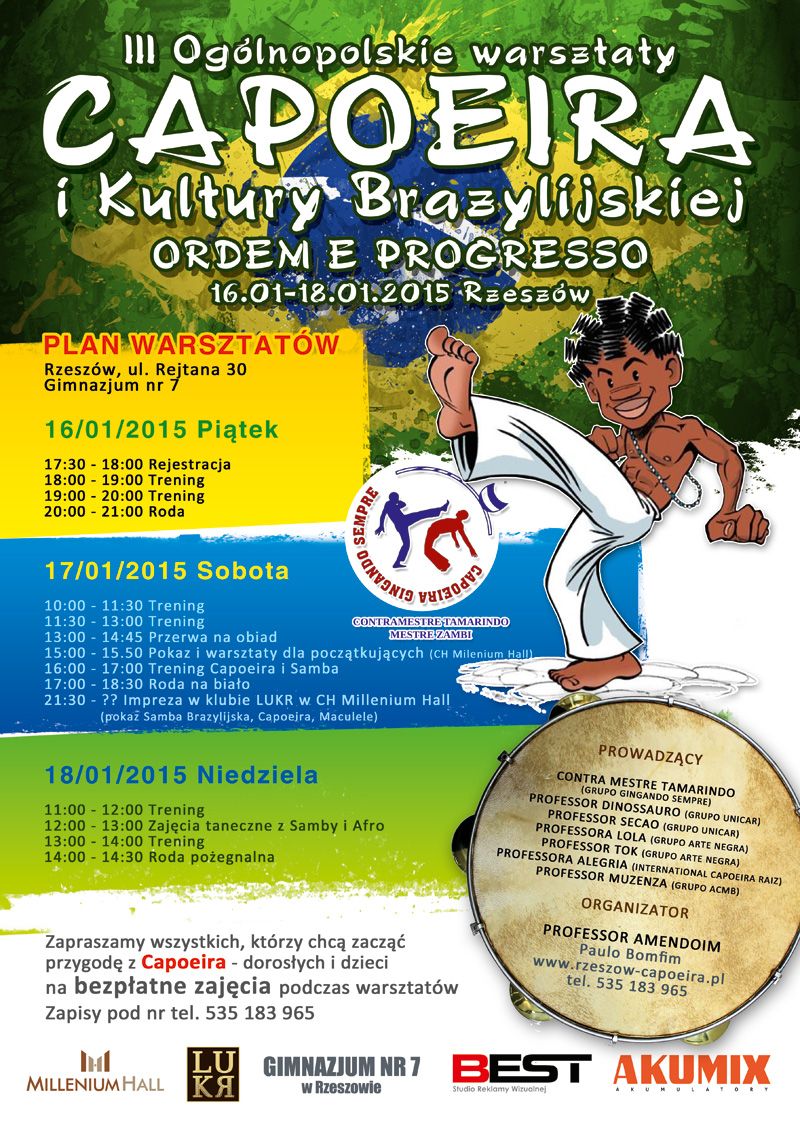 Wieczorem odbędzie się impreza w klubie LUKR, podczas której odbędą się pokazy samby brazylijskiej, capoeiry i maculele.