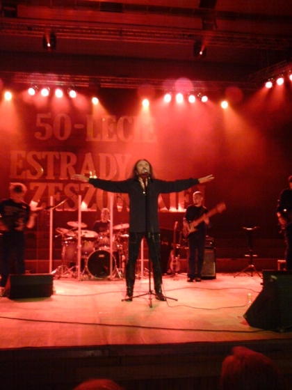 Później przyszedł czas na występ gwiazdy wieczoru – Stana Borysa. Po bardzo udanych prezentacjach śpiewającej młodzieży zdawać by się mogło, że artysta zabrzmi nieco słabo, trochę historycznie… Tymczasem Stan Borys tym koncertem udowodnił, że drzemie w nim jeszcze wulkan energii i potrafi filharmoniczną publiczność w bardzo średnim wieku rozgrzać do czerwoności. Artysta wystąpił w towarzystwie swojej nowej grupy - „Imię jego 44”, w skład której wchodzą młodzi i bardzo utalentowani muzycy. Widzowie po tym koncercie spodziewali się zapewne czegoś w rodzaju wieczoru wspomnień. Tymczasem usłyszeli bardzo dobry koncert, w porywach mocno rockowy i zaskakująco współczesny. Widać, że artysta trzyma rękę na pulsie muzyki współczesnej i potrafi sobie dobierać współpracowników z najwyższej półki. Stare, znane wszystkim kawałki zostały zaprezentowane w nowoczesnych, bardzo energetyzujących aranżacjach, a całość zabrzmiała tak mocno, że aż niepasująco do nobliwej przestrzeni dużej sali filharmonii. Swój występ Stan Borys przeplatał monologiem. Mówił o swoich związkach z Rzeszowem, z Estradą, gratulował odznaczonym, mówił o tym, jaki rodowód mają jego największe przeboje, wychodził do publiczności i witał się z ludźmi, z którymi znał się osobiście… Każdy kolejny numer brzmiał coraz lepiej, a całość występu zyskiwała niezwykłą ekspresję. Publiczność bardzo długo nie chciała się pożegnać ze swoim idolem. Bisom nie było końca...