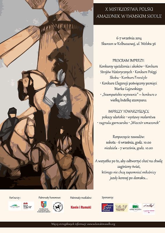 Stowarzyszenie „W Damskim Siodle”, Stadnina Koni „Arabka” w Mysłowicach oraz Muzeum Kultury Ludowej w Kolbuszowej zapraszają na X Mistrzostwa Polski Amazonek "W Damskim Siodle 2014".