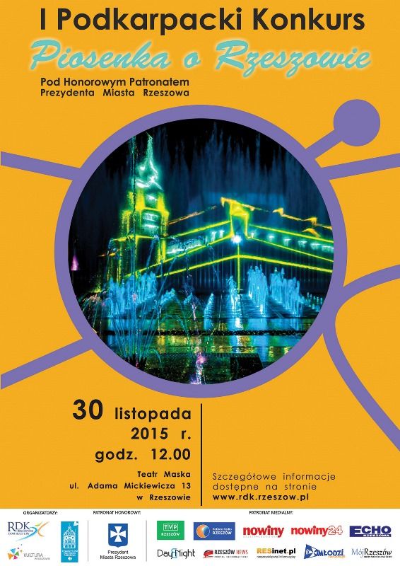 Konkurs „Piosenka o Rzeszowie” odbędzie się 30 listopada 2015 roku w rzeszowskim Teatrze Maska. Przesłuchania konkursowe w charakterze otwartego dla publiczności koncertu rozpoczną się o godzinie 12:00. Wstęp na wydarzenie jest bezpłatny. Termin nadsyłania zgłoszeń upływa 13 listopada 2015 roku.