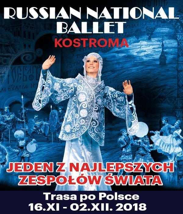 Jeden z najlepszych zespołów świata - RUSSIAN NATIONAL BALLET . Pomimo, że zespół na światowych scenach występuje dawna to Polskę odwiedzi po raz pierwszy, w listopadzie 2018 r. Zespół ten to najlepsza wizytówka rosyjskiej sceny na równi z baletem Mojsiejewa i Bieriozką. Zespołem kierują wielcy artyści światowych scen: Elena i Yury Tsarenko oraz Maria Veshkina, a główną ideą, jak im przyświeca jest kultywacja tradycji i wychowywanie młodych pokoleń w szeroko pojętej kulturze i tolerancji. Program prezentowany przez RUSSIAN NATIONAL BALLET, zawiera bogatą historię Rosji pokazaną przy pomocy różnych technik scenicznych. Połączenie lirycznych szkiców z elementami baletu klasycznego, starożytnej epopei rosyjskiej oraz tańca współczesnego ukazuje wspaniałe dziedzictwo wielu pokoleń i narodów. Na scenę wyjdzie 50 wybitnych artystów z niezliczoną ilością kolorowych kostiumów i rekwizytów - to będzie wielkie, niepowtarzalne show. Feria barw i bogactwo dźwięków przeniosą Państwa w inny świat, to będzie niezwykła podróż w czasie, liryczna i nostalgiczna a zarazem ekspresyjna i pełna wigoru.